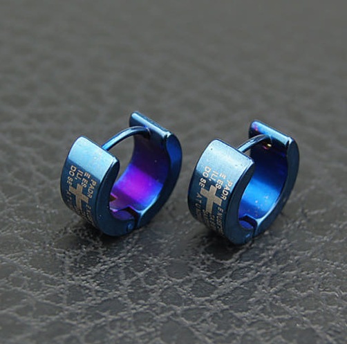 티타늄 재질로 제작된 미니멀한 기독교 링 귀걸이입니다.