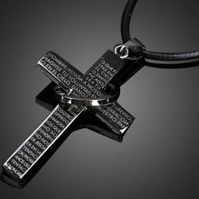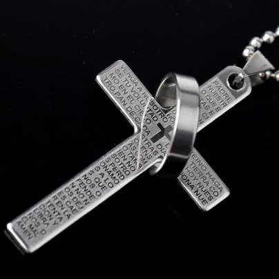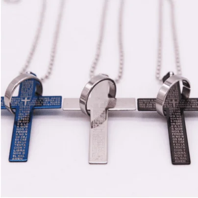성경 구절이 새겨진 십자가 목걸이입니다.