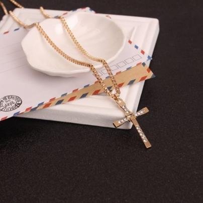 Diamond Cross Necklace (Gold) / Fashion Accessory Jewelry