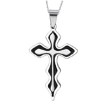 Wave Cross Necklace (Black) / Stainless Steel Catholic Christian