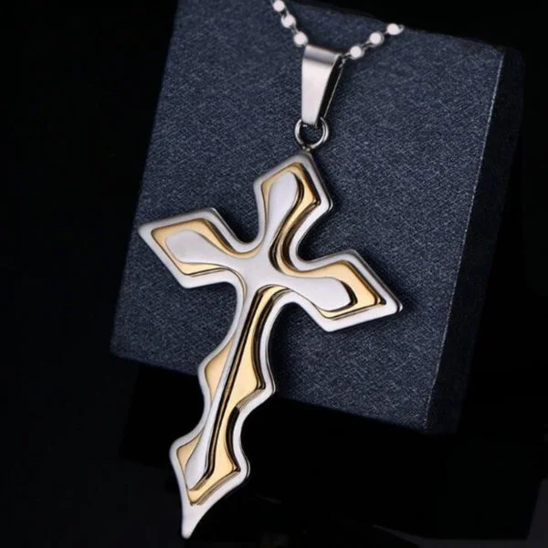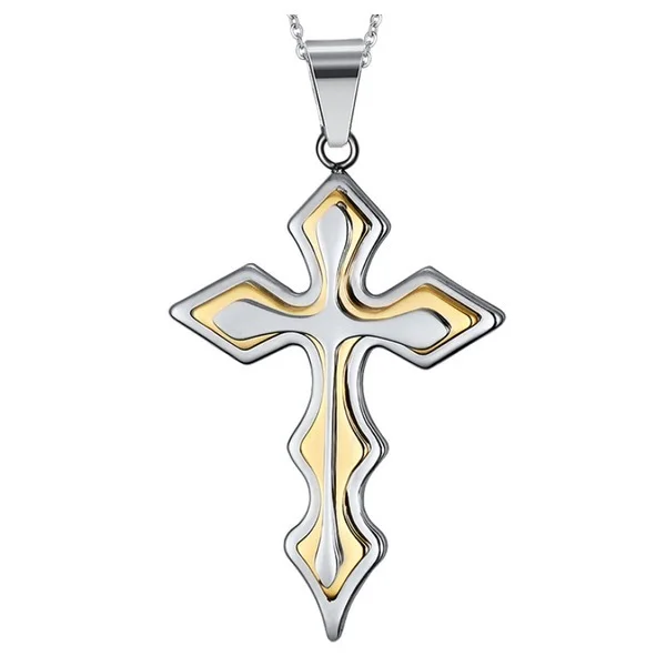 Cross Wave Necklace (Yellow) / Stainless Steel Catholic Christianity