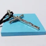 It is a cross necklace carved in silver.