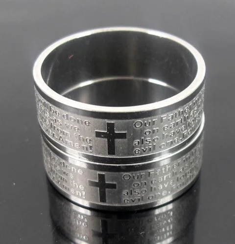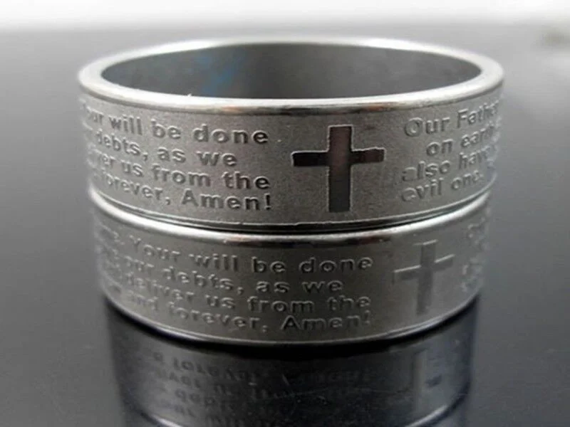 Lord’s Prayer Cross Ring (Silver) / Titanium Steel Christian Jewelry