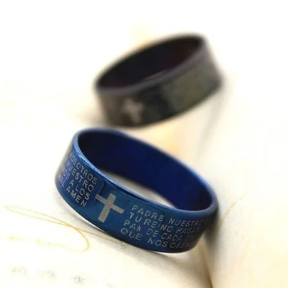 십자가 주기도문 반지(파랑색) / 티타늄 스틸 기독교
