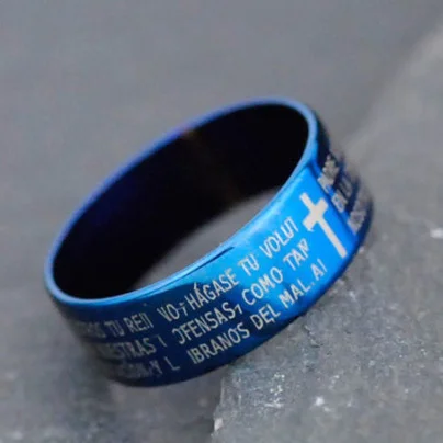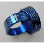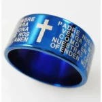 Lord’s Prayer Cross Ring (Blue) / Titanium Steel Christian Jewelry