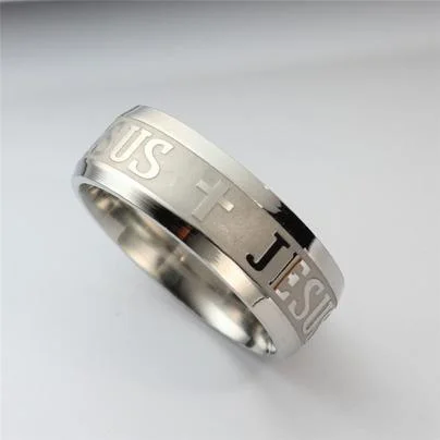 십자가 티타늄 스틸 성경 반지(실버) 기독교 천주교 선물