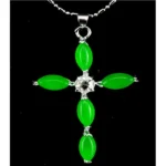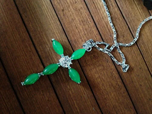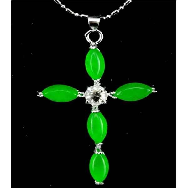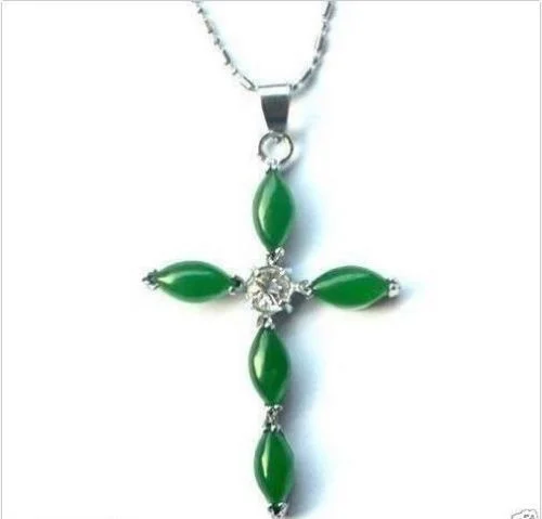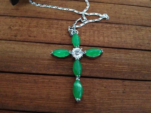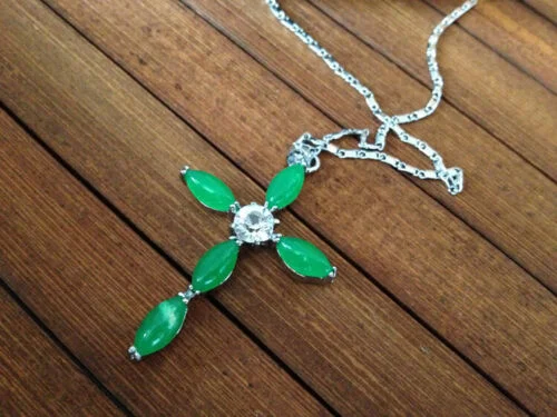 Jade Crystal Cross Pendant Necklace / Christian Catholic Gift