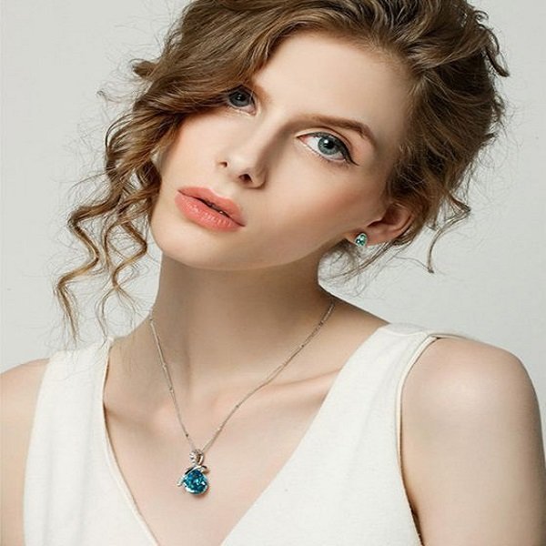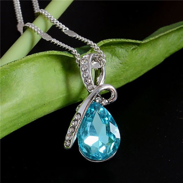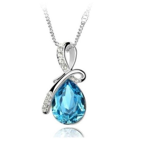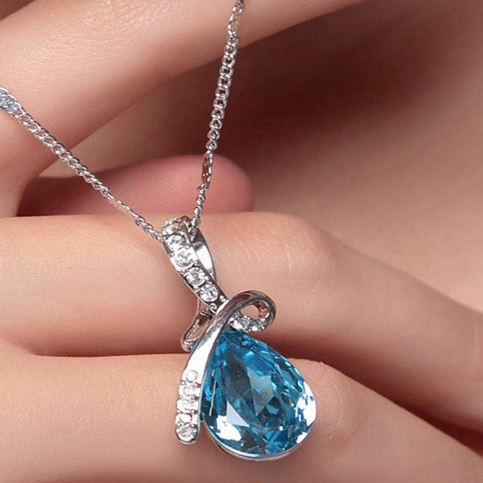 Crystal Water Drop 925 Necklace (Sky blue) / Chain Gift Jewelry Luxury
