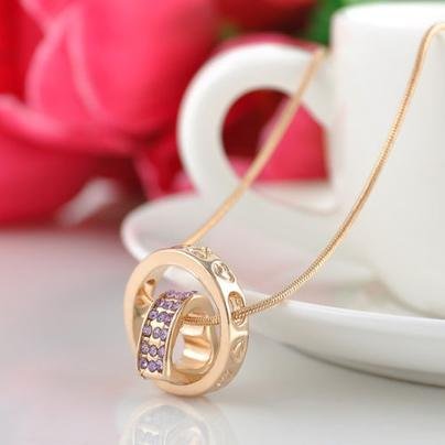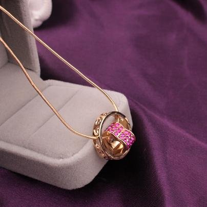 18K GP 서클하트 목걸이(핑크색) / 크리스탈 여성 라인석 선물 하트