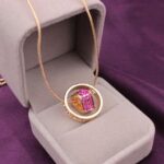 18K GP Circle Heart Necklace (Pink) / Crystal Women’s Line Stone Gift Heart