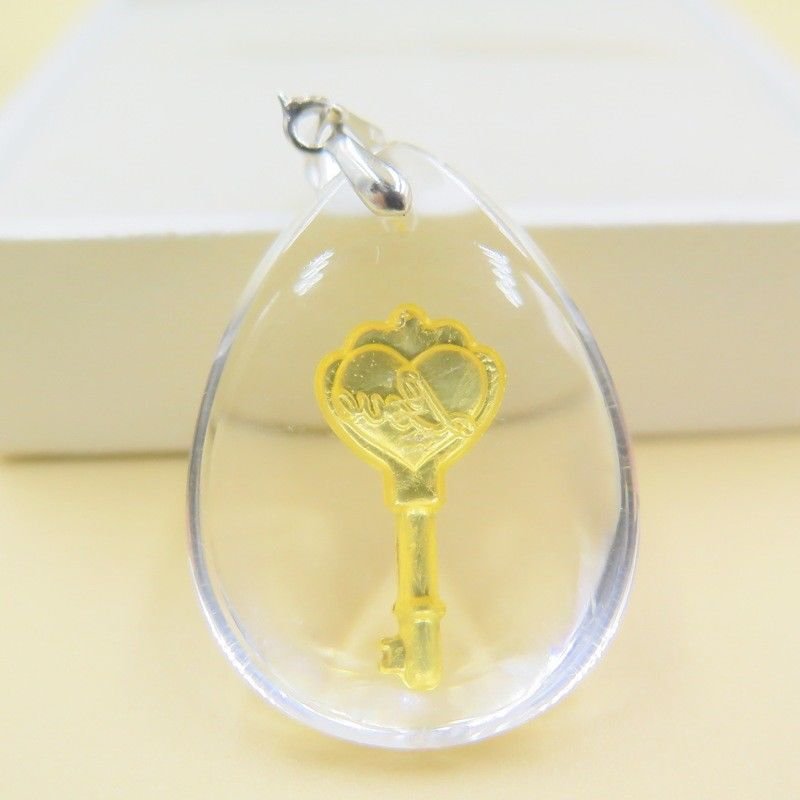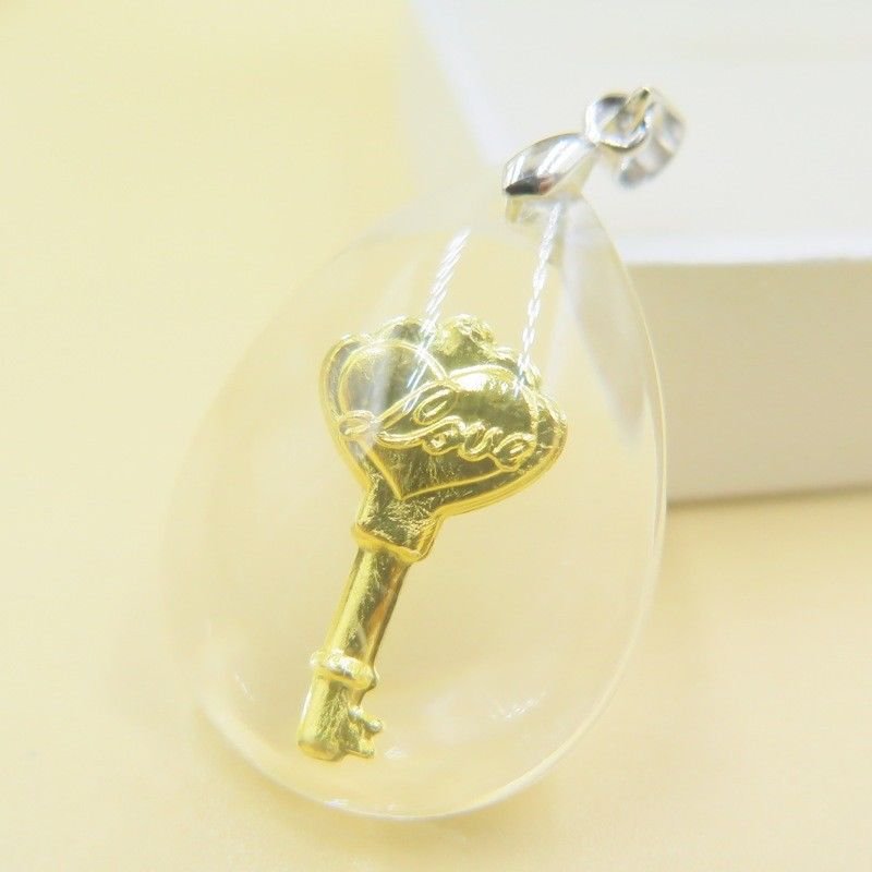 24K 순금 하트 열쇠 목걸이 / 네추럴 크리스탈 공예 황금 선물
