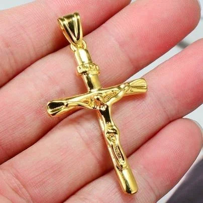 14K GF Jesus Cross Necklace / Christian Catholic Gift