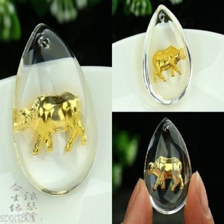 24K 순금 소 목걸이 / 크리스탈 공예 황금 고급 선물