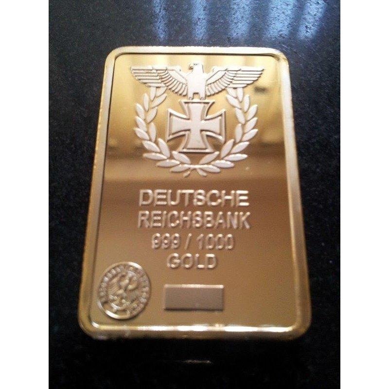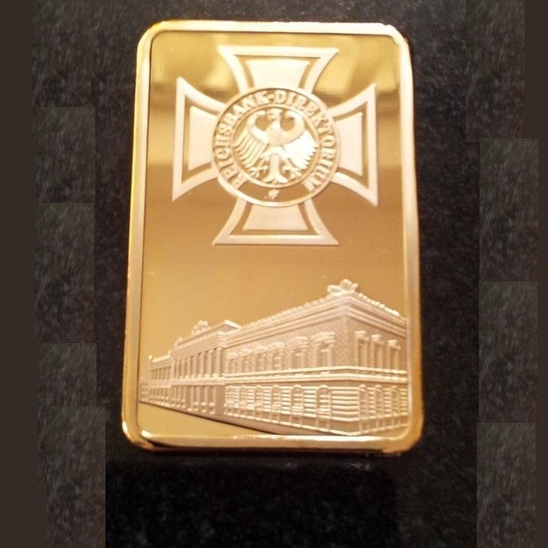 It is a plated gold bar with a 1oz German painting.