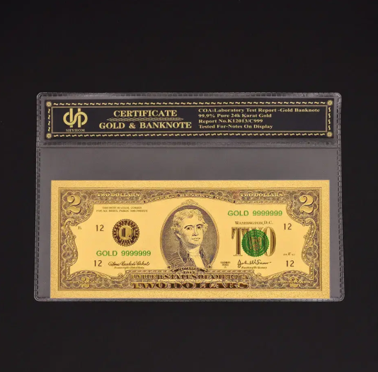 24K GP Gold $2 Banknote / Exchange Rate Gift Commemorative