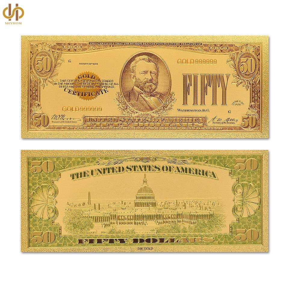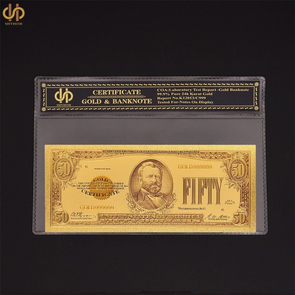 This item: 24K GP 1928년 금 50달러 기념 / 미국 황금 지폐