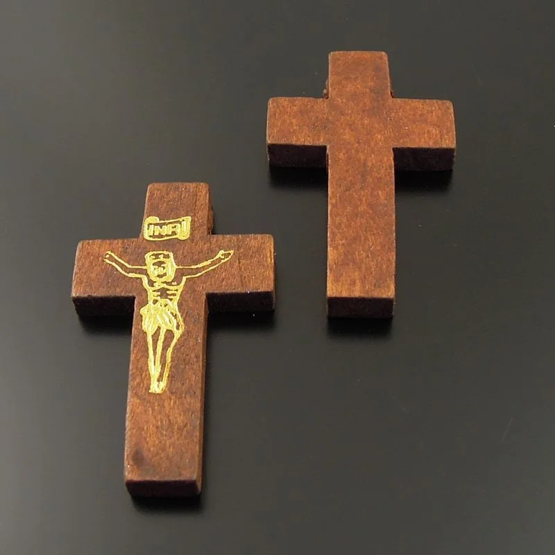 INRI Small Wooden Cross Necklace / Christian Catholic Commemorative