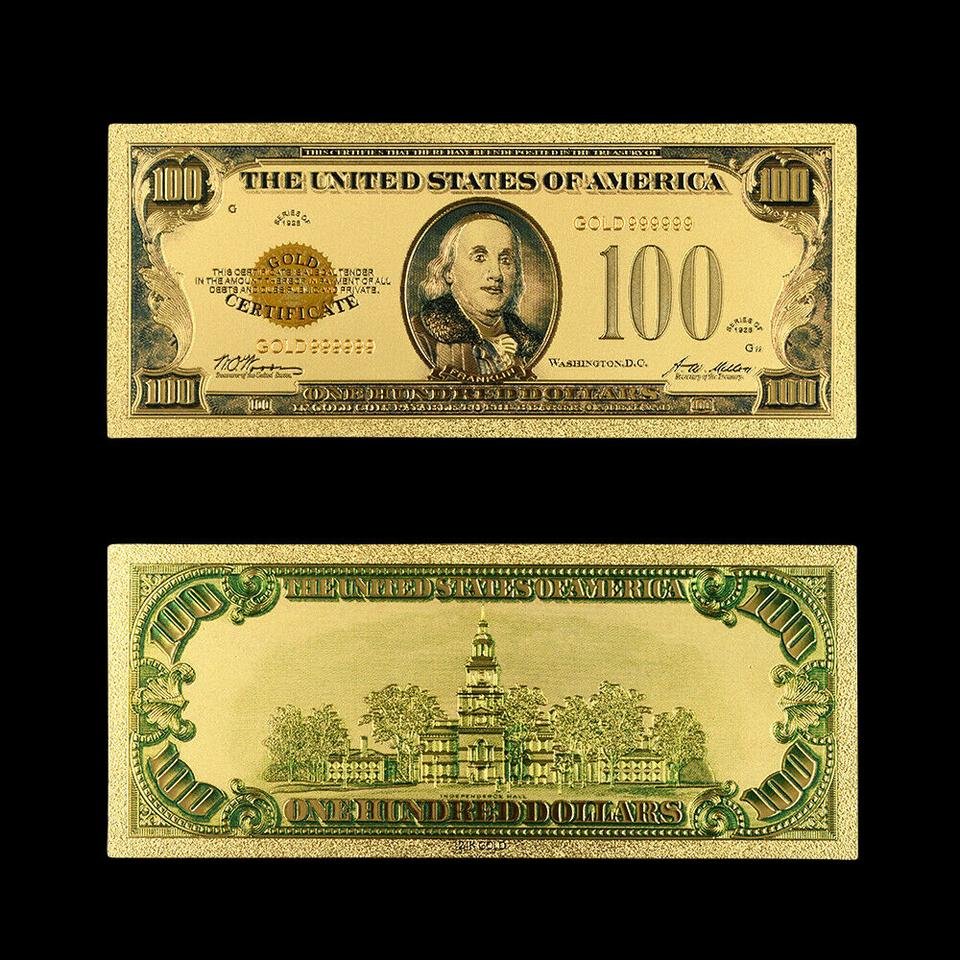 24K GP 1928년 금 100달러 기념 / 미국 황금 지폐